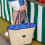 Grâce à sa jupe en spinnaker recyclé couleur blanche, et ses lacets en garcette, ce panier cabas fait main protégera vos affaires du sable et des petites intempéries.