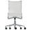 Chaise sur roulettes souples (sur demande dures ou souples bloquantes) à hauteur réglable avec base tournante à 5 branches, structure composée de profil d'aluminium extrudé et d'éléments en fonte d'aluminium, assise et dossier en tissu polyester maillé ignifuge ou en tissu Camira® ou Kvadrat® ou en cuir Pelle Frau®.