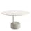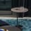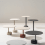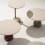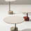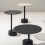 Disponible en deux hauteurs, Oell se caractérise par un piètement cylindrique et une colonne asymétrique en métal laqué pour soutenir les plateaux ronds en grès cérame.