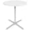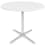 Table ronde Fred avec piétement à quatre branches en aluminium brillant ou laqué blanc. Plateau rond en MDF gaufré blanc, disponible en différentes dimensions et formats.