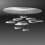 Un plafonnier composé de plusieurs éléments lumineux qui semblent élégamment flotter sous une feuille d'aluminium au design épuré et séduisant.