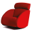 Fauteuil à bascule avec un appui-tête réglable. Intérieur en acier tubulaire. Garnissage en mousse polyuréthane sans CFC. Revêtement cuir ou tissu déhoussable.