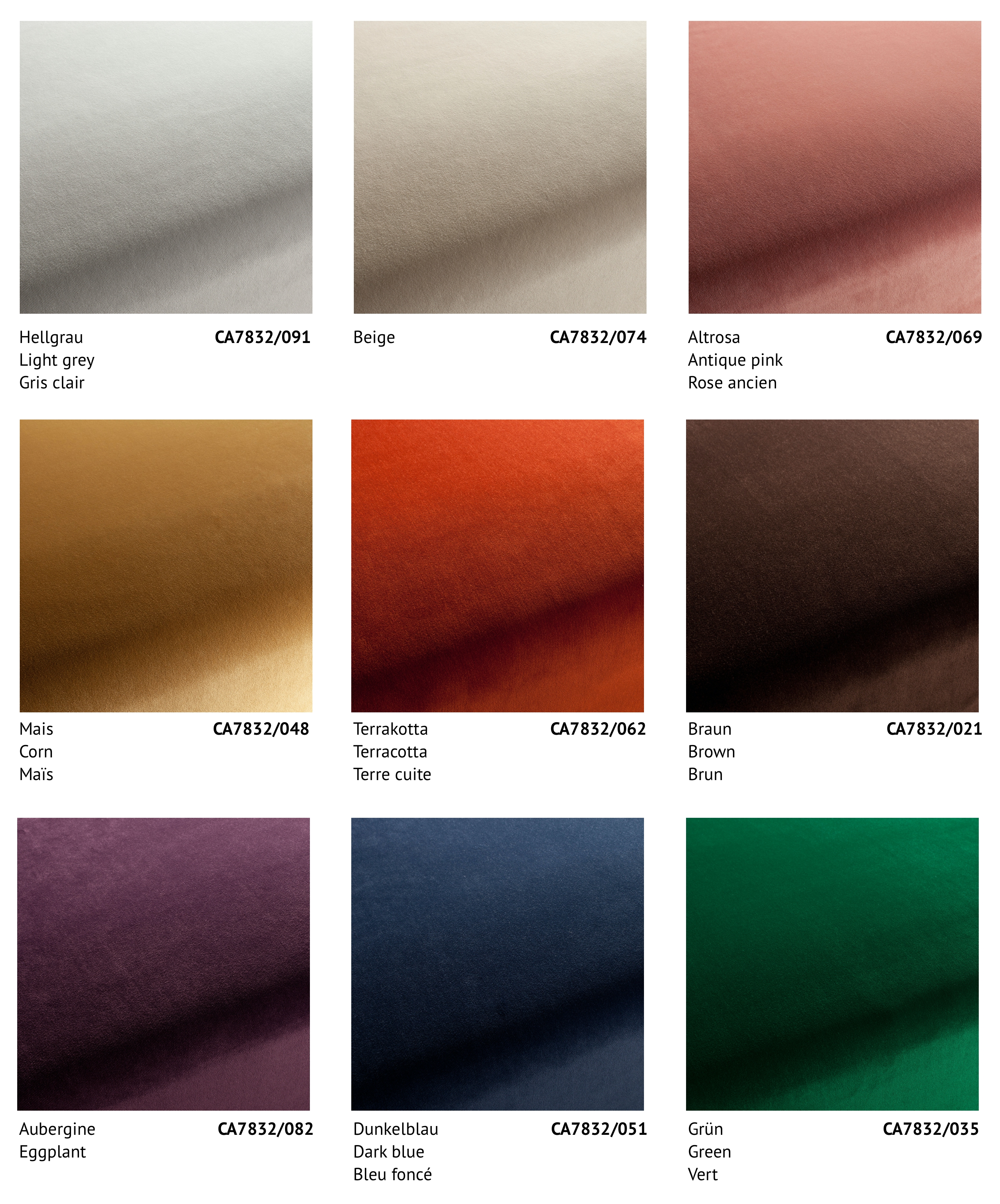 Un rembourrage est possible dans différents tissus JAB, Chivasso ou BW. Un rembourrage dans un tissu spécifique au client est également possible.