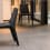 Chaise avec piètement acier, rembourrage mousse à froid et revêtement cuir.