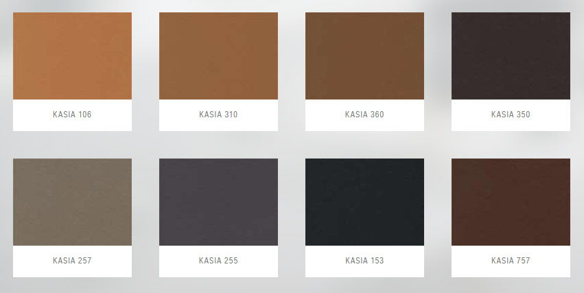 Le revêtement est à choisir parmi une large gamme de tissus et de cuirs, de couleurs rehaussées de surpiqûres en relief qui soulignent davantage le graphisme de la structure.
