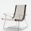 Le petit fauteuil J.J existe en deux tailles, l'une se prête à la détente avec un dossier haut, l'autre aux conversations. Les fauteuils sont disponibles en deux modèles: l'un avec un cadre thermotraité en frêne sur une structure en acier tubulaire, l'autre avec un cadre et une structure en frêne thermotraité. L'assise est constituée de bandes tissées écrues, noires ou vertes fixées au cadre et d'un coussin d'assise en cuir. La version avec un dossier haut peut être habillée avec une garniture en laine d'agneau poil long de Mongolie.