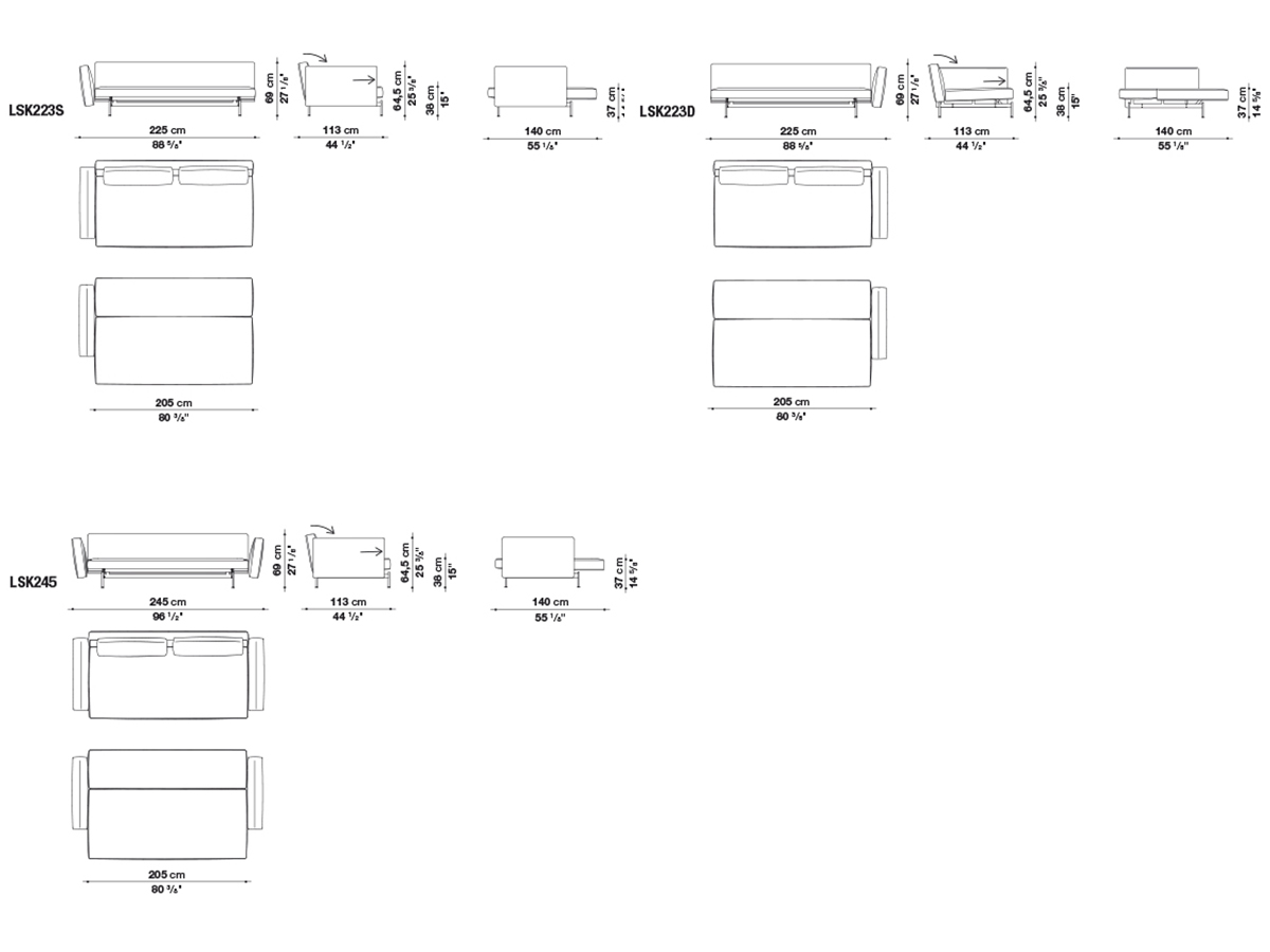 SAKé est le résultat de la collaboration entre Piero Lissoni et B&B Italia. Une série de canapés au style moderne et en quête d'un équilibre formel. L'accoudoir droit ou gauche du canapé-lit sert de tête de lit et le canapé se transforme en lit simple en déplaçant le siège et en rabattant le dossier. Les coussins sont munis de coutures de séparation à 35-45cm d'intervalles. Disponibles en deux tailles, les coussins dossier ont un profil circonférentiel. La base est constituée de traverses avec des pieds en fer rond laqué étain reliés par une barre.
