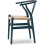 La chaise Wishbone est sans doute la chaise la plus célèbre de Hans J. Wegner. La chaise au caractéristique dossier en Y est légère, attractive et confortable. Le design sobre et les lignes claires dessinent une chaise souvent citée comme modèle absolu de l'objet siège.