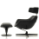 Fauteuil pivotant sur structure fixe et repose-pieds. La coque en fibre de verre laqué brillant ou noir est reliée au socle à quatre branches (blanc ou noir mat) par un plateau horizontal. Le fauteuil est disponible avec un appui-tête réglable en 8 positions ou sans appui-tête. La structure interne est en métal avec un rembourrage en mousse polyuréthane sans CFC et ouate polyester. Le repose-pieds dispose d'une coque en noir ou blanc brillant et d’une base en acier incurvée en blanc mat ou noir laqué. Structure interne en placage de bois et rembourrage en mousse polyuréthane sans CFC et ouate polyester. Revêtement tissu ou cuir déhoussable.