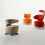 Un fauteuil pivotant fixe en acier et en polyuréthane noir moulé - ou en fonte d'aluminium. Également disponible avec des roulettes noires. Le fauteuil se compose d’un dossier et d’accoudoirs, dont l'un dispose d’une forme fixe de façon à pouvoir servir d'appui-tête. Structure en acier avec rembourrage en mousse de polyuréthane sans CFC ni ouate de polyester. Revêtement déhoussable en tissu ou en cuir.