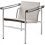 Une assise légère et compacte, conçue et présentée en 1929 au Salon d’Automne aux côtés d’autres modèles emblématiques tels que les fauteuils 2 Fauteuil Grand Confort, Petit Modèle (LC2) et 3 Fauteuil Grand Confort, Grand Modèle (LC3), la table 6 Table Tube D’Avion (LC6) et la 4 Chaise Longue à Reglage Continu (LC4). Comme toutes les œuvres du Corbusier, le 1 Fauteuil Dossier Basculant (LC1) est lui aussi le fruit d’une étude approfondie de la posture du corps et, dans ce cas précis, constitue le siège parfait pour une détente au calme et une atmosphère propice à la conversation.