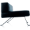 Fauteuil extravagant aux formes cubistes avec une armature en acier remarquable, chromée ou laquée noir gaufré. Les immenses coussins sont escamotables et le revêtement en tissu ou en cuir est déhoussable.