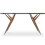 Le plateau rectangulaire présente, sur les deux plus grands côtés, à proximité des extrémités, quatre fentes à découpe droites dans lesquelles, comme de véritables articulations, sont vissés les embouts des parties supérieures des pieds. Ces derniers ont une forme caractéristique en « Y » divergente. Ils sont disponibles en frêne ou noyer Canaletto et liés deux par deux grâce à une traverse profilée.