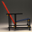 Une chaise avec un cadre en hêtre teinté noir. Assise (bleu) et dossier (rouge) en bois stratifié laqué. Cette chaise extravagante est une création du designer et architecte Gerrit Thomas Rietveld dont l'œuvre se caractérise par une géométrie sévère et un usage de couleurs primaires, jaune, rouge et bleu, et le projet de réunir art visuel, design et architecture.