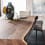 Élégante table en filigrane qui dispose d’une base en acier embossé en différentes couleurs laqué transparent. Les bordures brutes en noyer Canaletto du plateau en bois massif de 8cm d’épaisseur lui confère un évident cachet.