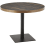 Table haute ronde avec un plateau en céramique Marmi disponible en plusieurs coloris. Le plateau est ceint d'une bande métallique laquée couleur, gauffrée en noir ou bronze brossé.