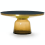 La table basse "Bell Table" de Sebastian Herkner bouleverse la façon habituelle de travailler les matériaux et éveille notre attention: le pied de la table devient objet en verre colorée en transparence dans la pièce sur laquelle repose un corps en métal. Le verre permet au métal au caractère lourd de flotter avec légèreté. La base en verre soufflée et le corps en métal pressé forment un contraste passionnant et une élégante harmonie.