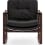 Le fauteuil offre confort tout en assurant un contour aérien et élégant avec ses accoudoirs travaillés, son piètement luge, ses surfaces en corde et son balancement graphique. Cadre en chêne teinté foncé et corde noire, cadre en chêne clair et corde couleur chanvre ou assise capitonnée tissu ou cuir.