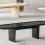 Dans la version proposée ici, la table dispose d'un plateau en Nero Marquina de haute qualité et d'un piètement en bois de frêne laqué noir.