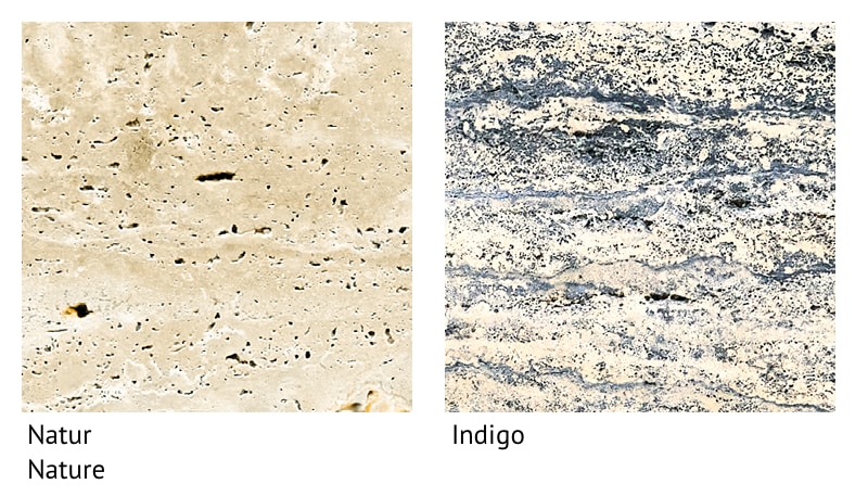 Grâce à la veinure naturelle du travertin, chaque plateau de table est unique. Des différences de couleur, de structure et de surface sont possibles.