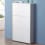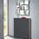 Armoire à chaussures Atlantic: trois rangements tournants, façade et étagères en verre sécurisé. Éléments tournants en aluminium. Intérieur acier laqué argent. Pour le rangement de 15 à 21 paires de chaussures. Fixation murale ou sol.