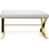 Le banc extrêmement élégant « Bench » de Decor Walther est parfaitement adapté à une utilisation dans la salle de bains. L'assise confortable est disponible au choix avec un rembourrage noir ou blanc en similicuir de haute qualité. Le piètement, quant à lui, peut être commandé en finition dorée (brillante ou mate au choix), en acier inoxydable poli brillant ou laqué noir.