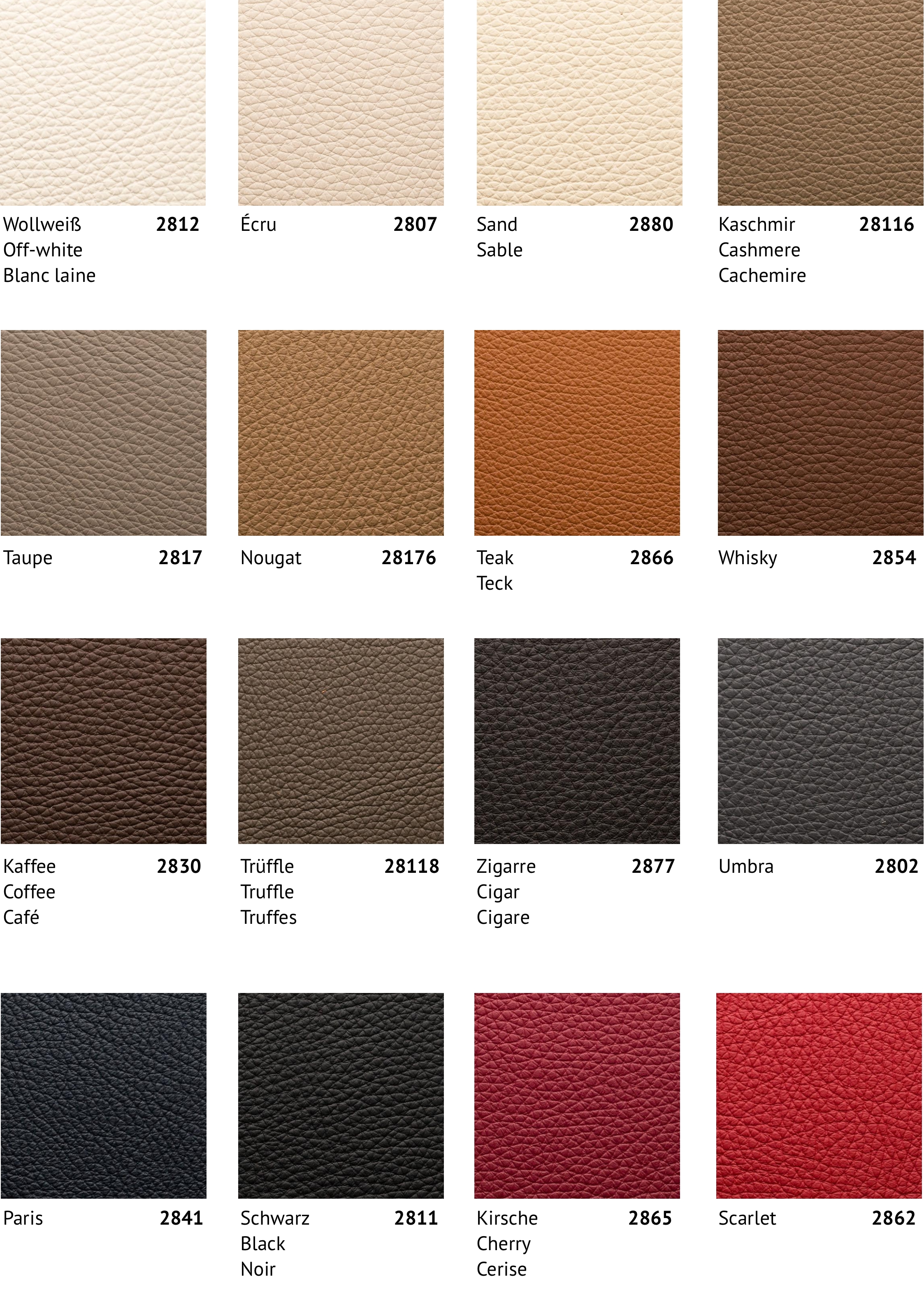 • Rembourrage en cuir Living (cuir nappa résistant et insensible, légèrement pigmenté)