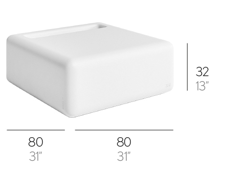 La table basse pour le fauteuil se compose de polyéthylène moulé par rotation 100% recyclable.