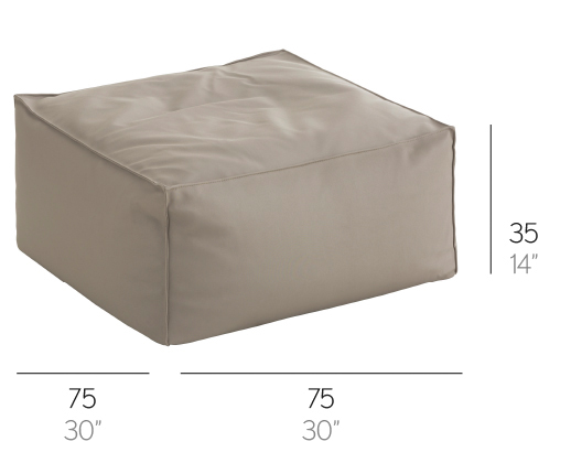 Pouf carré en tissu pour extérieur avec un revêtement déhoussable en tissu perlant garni de perles polystyrène. Plusieurs tissus au choix..