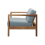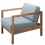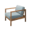 Le fauteuil possède une construction classique en bois, en chêne ou en noyer. Il est disponible avec un revêtement en tissu ou en cuir et peut également être recouvert d’un tissu choisi par le client. Les accoudoirs si caractéristiques d'une épaisseur de 4 cm lui offrent un aspect linéaire. Le capitonnage et la mousse de haute qualité rendent le siège très confortable. Les éléments capitonnés ne sont pas fixés au fauteuil, mais amovibles et faciles à nettoyer. La hauteur d'assise est de 40 cm. Chêne européen ou noyer européen, huilé. Housses d'ameublement disponibles en différents tissus et cuirs.