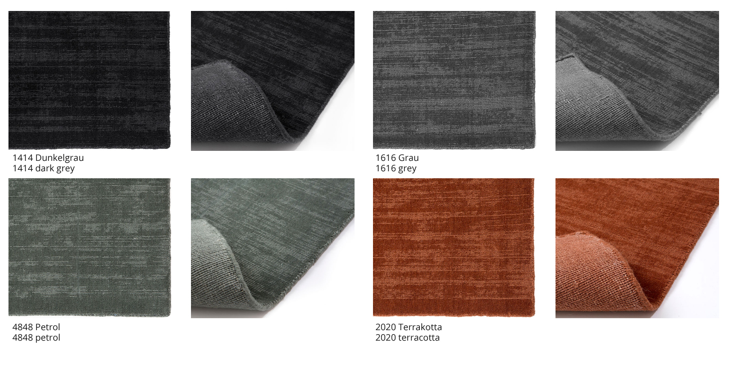 Un tapis contemporain noué en fine laine de Nouvelle-Zélande qui chatoie en deux teintes bien qu'il soit unicolore. La douceur du tapis et l'intensité des couleurs résultent de la technique du rasage appliquée à la suite du nouage. Le tapis existe dans les couleurs classiques, gris foncé, gris, Terracotta et vert pétrole.