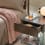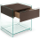 Chevet en verre cintré de 8 mm avec tiroir en bois laqué blanc, noir ou marron et façade en verre de 8 mm verni de la même couleur.