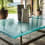 Table basse avec plateau en verre DV-GLASS® de 23mm transparent ou avec bandes colorées.