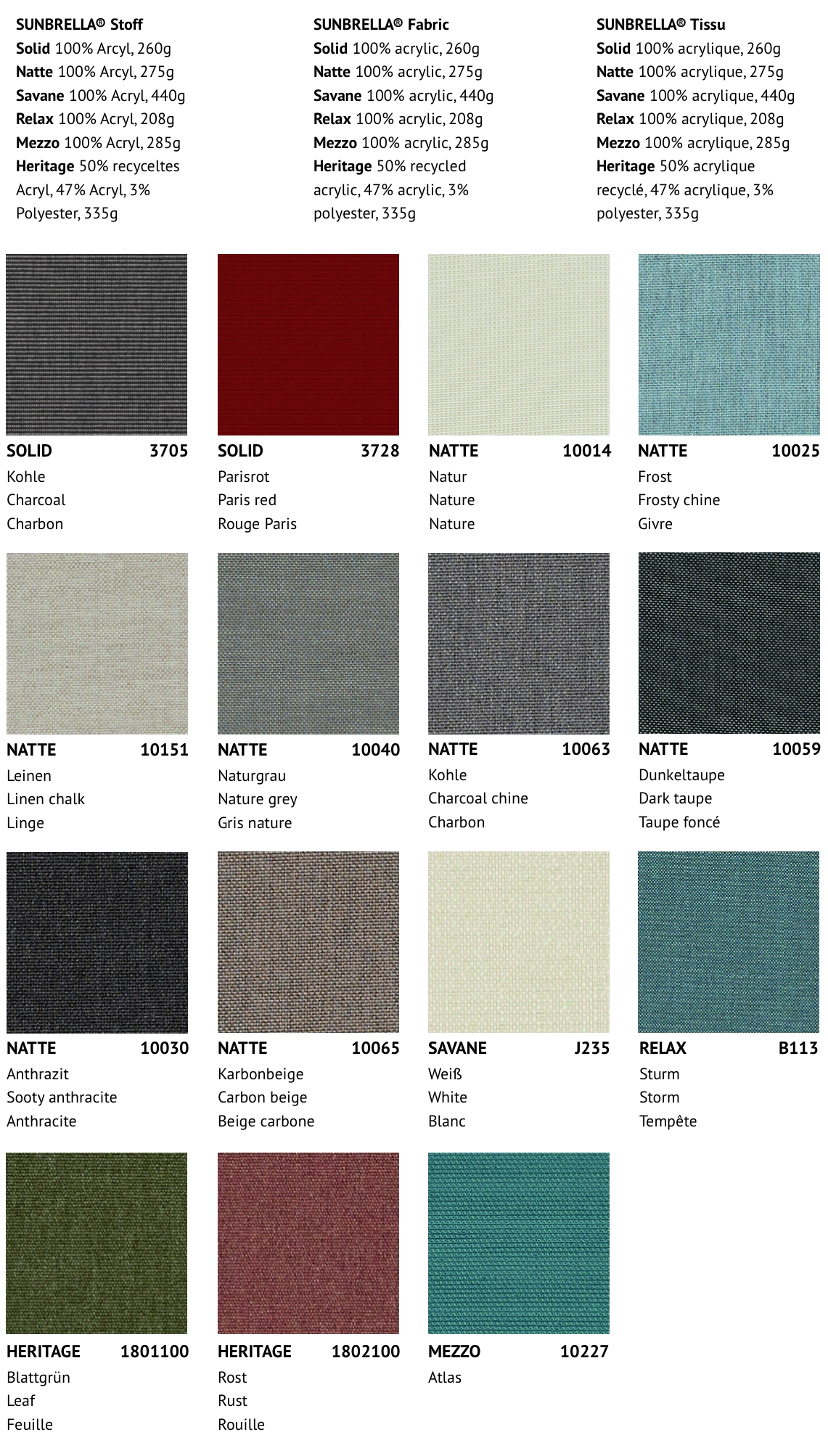 Coussins d'assise pour les meubles de la collection Outdoor Modena de Fischer Möbel. Les coussins sont disponibles dans un grand choix de tissus et de couleurs pour l'extérieur et sont équipés d'un rembourrage en mousse à séchage rapide (QuickDryFoam).