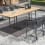 Le fauteuil élégant est composé d'une combinaison d'acier inoxydable thermolaqué anthracite et d'une bande textile qui convient parfaitement à l'extérieur. Il offre un confort d'assise exceptionnel et invite à se détendre à table. Les tables sont proposées dans un choix varié de tailles et de finitions.