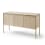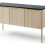 Jut - armoire moderne pour le salon et le couloir. Le piètement rond est placé aux angles extérieurs et les élégantes poignées en laiton des portes de l'armoire s'alignent sur le plateau. L'espace à gauche est vide, tandis que les espaces du milieu et de droite sont divisés par une étagère amovible. Le plateau est disponible en chêne ou en marbre - deux matériaux connus pour la beauté de leur texture.