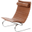 PK20™ est un fauteuil qui cultive la nonchalance et l'élégance en rotin ou en cuir et repose sur un cadre en acier chromé mat à ressort.