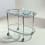 Desserte en verre transparent 8mm. Disponible sur demande enverre laqué en noir, blanc, crème, rouge, bleu navy brillant ultra ou mat satin. Cadre laiton chromé ou laiton vernis zapon. Également disponible en version ronde Riki T 53.