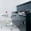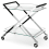 Desserte sur roulettes en verre 10mm transparent, laqué couleur ou satiné couleur. Structure laiton chromé, poignée bois.