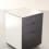 Caisson à roulettes surface miroir sur trois côtés. Tiroir en noir, blanc ou gris foncé couvrant sur bois. Sur demande 2 tiroirs et un tiroir avec dossiers suspendus.