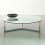 Table basse avec plateau en verre transparent 12mm. Cadre en acier inoxydable poli (Inox). Dimension: 40x20x2 mm. Éléments d'attache en aluminium chromé.