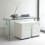Le modèle Techna 13 est également disponible en métal peint, mais avec une façade de tiroirs en verre. Ici aussi sont disponibles, une finition laquée en brillant et une finition satinée en mat. Avec verrouillage centralisé et tiroir à ustensiles.