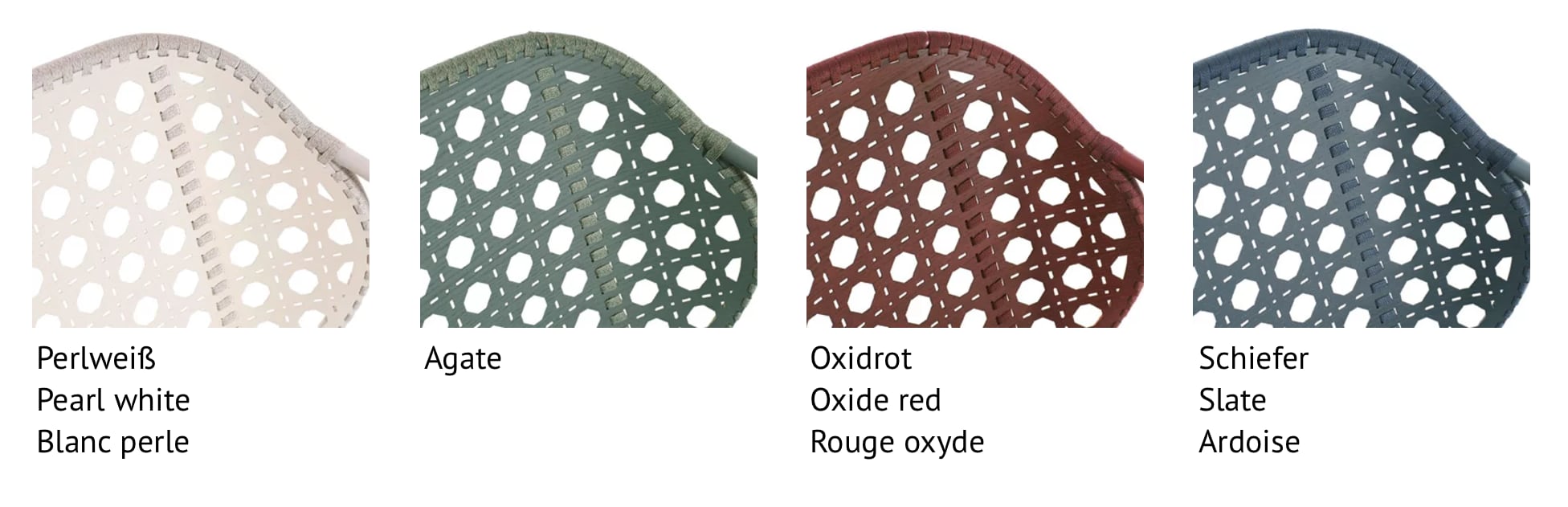 C’est cette liberté de composer l’espace autour de la table de jardin qui inspire notre choix de chaises d’extérieu Brise. La collection de chaises est en tubulaire d'acier inox avec une assise et un dossier en Wood Evolution. C'est justement le travail du dossier en Wood Evolution découpé au laser qui identifie la particularité de la collection Brise: la création d'une texture percée qui évoque la paille de Vienne. Les éléments des dossiers sont fixés sur la structure par une couture précieuse avec une corde nautique, couleur ton-sur-ton.