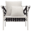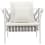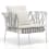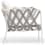 Cette structure sert de support à un tressage particulier en sangle élastique grise, noire, tabac ou bleue, un produit innovant à base de caoutchouc synthétique et de propylène. Des coussins d’assise et libres, déhoussables, ajoutent une touche moelleuse supplémentaire.