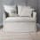 Dormeuse avec un cadre en bois stratifié et en bois massif, et un capitonnage en mousse polyuréthane. Revêtement déhoussable disponible avec plusieurs tissus au choix. Avec 3 coussins (Dacron et duvet).