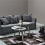 Canapé 4 places avec un cadre en bois stratifié et en bois massif, et un capitonnage en mousse polyuréthane. Revêtement déhoussable disponible avec plusieurs tissus au choix. Avec 6 coussins.