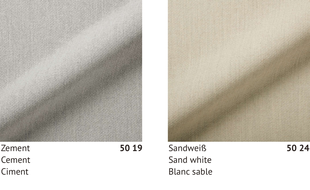 Le sommier boxspring est équipé de ressorts et rembourré de coutil. La hauteur des pieds est de 5 cm. Le revêtement se compose d'une housse en deux parties avec une couture piquée sur le pourtour du lit et de la tête de lit. La housse est dotée d'une fermeture à glissière au dos de la tête de lit et la surface de couchage est en coutil. Le matelas à ressorts ensachés est recouvert d'un double tissu, la housse est zippée, amovible et lavable à 40°C. A partir d'une largeur de lit de 160 cm, il est possible de choisir différents degrés de dureté pour les côtés du lit.