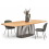 Dans la version proposée ici, la table est disponible en chêne huilé naturel ou huilé pigmenté blanc. Le piètement en acier est laqué en noir profond RAL 9005, les entretoises sont lasurées en Double Brand Colour.