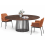 Dans la version proposée ici, la table est disponible dans différentes essences de bois spécialement affinées. Le piètement en acier et les entretoises sont peints en noir profond RAL 9005.