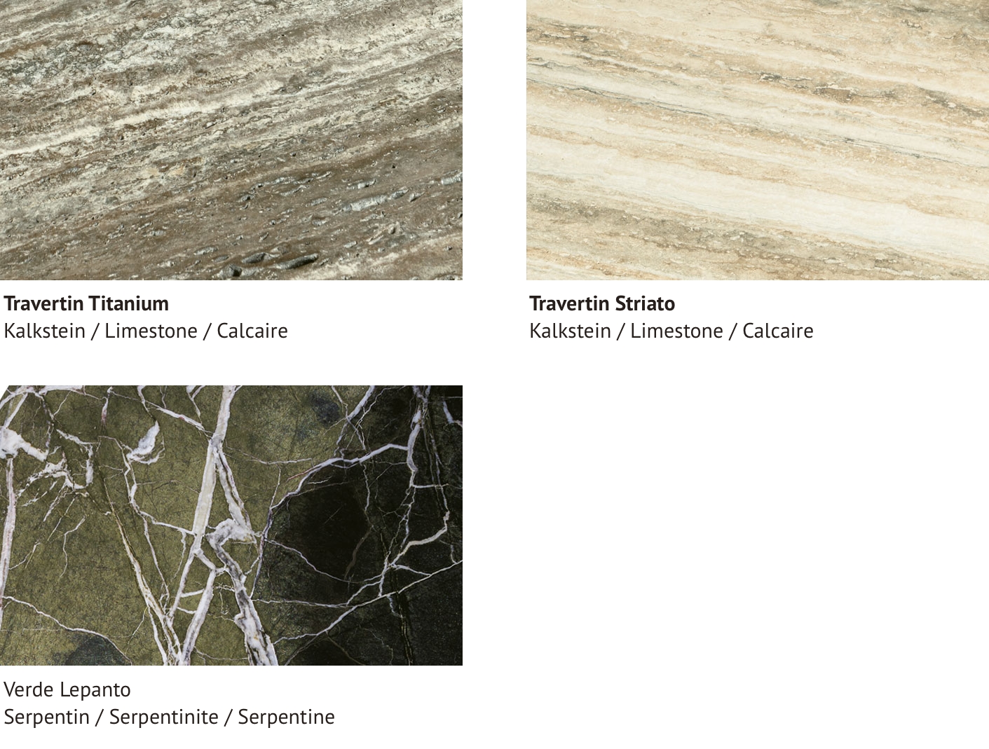Dans la version proposée ici, la table est disponible avec plateau de table en pierre naturelle. Le piètement en acier et les entretoises sont peints en noir profond RAL 9005.